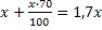 Ապրանքի գինը բարձրացրին 70%-ով։ Այնուհետև նոր գինը իջեցրին։ Արդյունքում ապրանքի գինը սկզբնականի նկատմամբ ավելացավ 19%-ով։ Իջեցումը քանի՞ տոկոսով էր կատարվել։